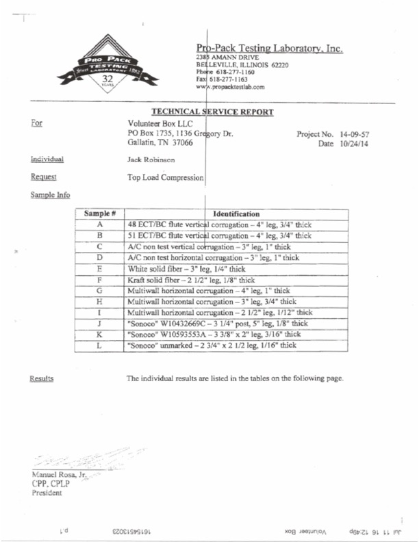 *Sample A, B, C, & D are Tuff-Angle Products